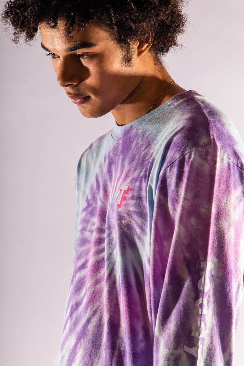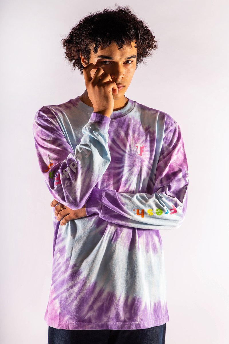 - Male model in tie dye is 6’0 and wearing size Large. Female model is 5’7 and wearing size X-Small.